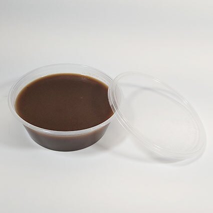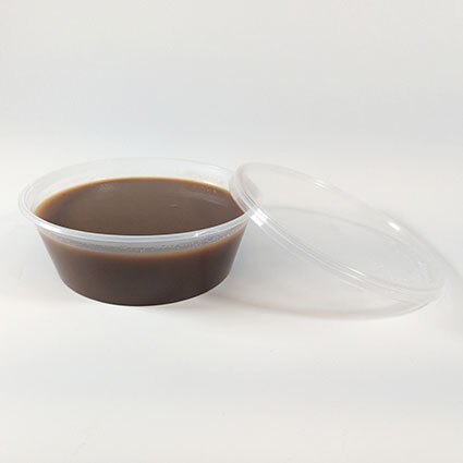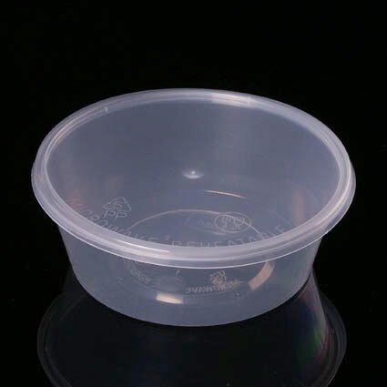 Clear round plastic food container with Lids provided. Commonly used as a sauce cup or to carry salad dressing.