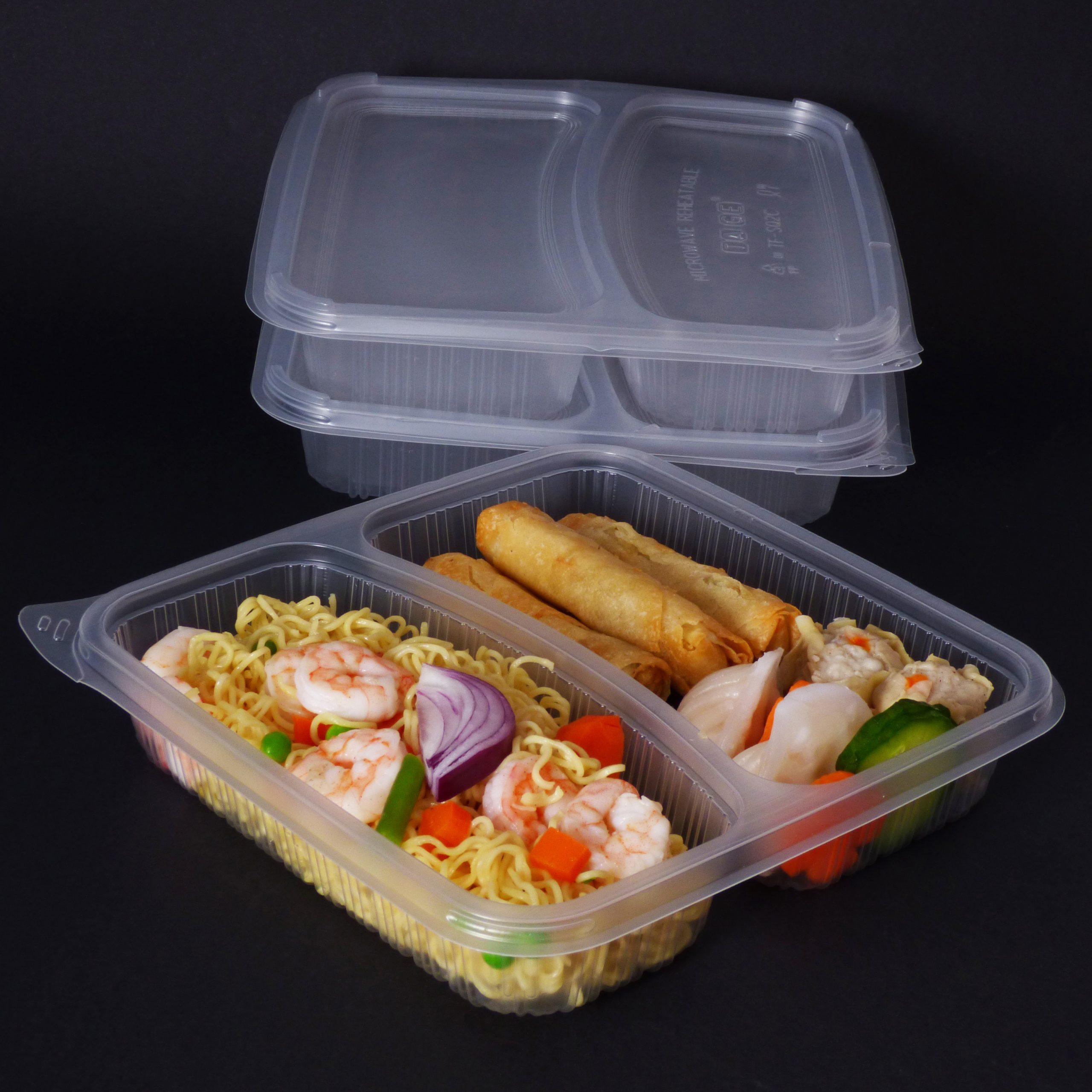1200cc Rectangular Food Container 3 Section (100 sets)