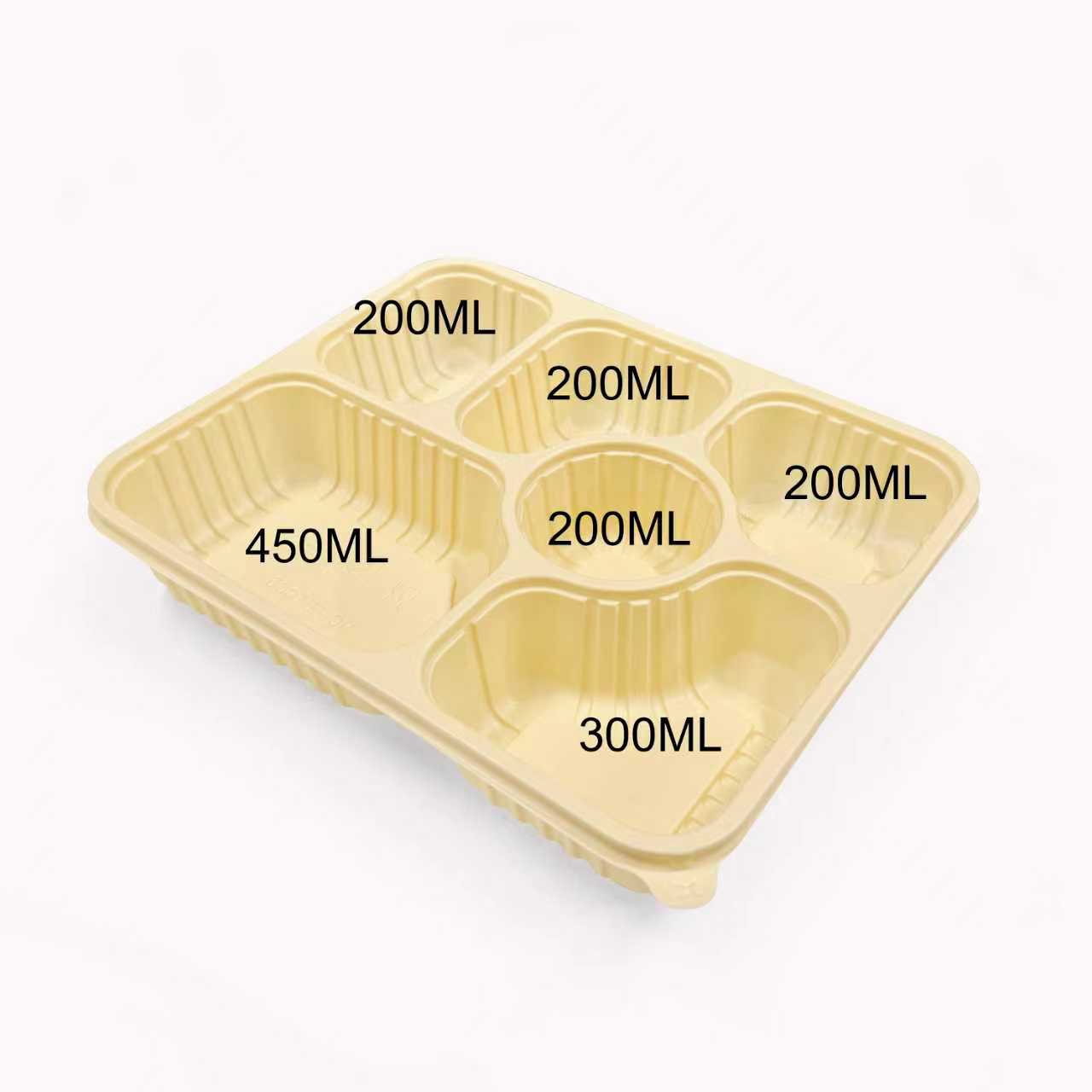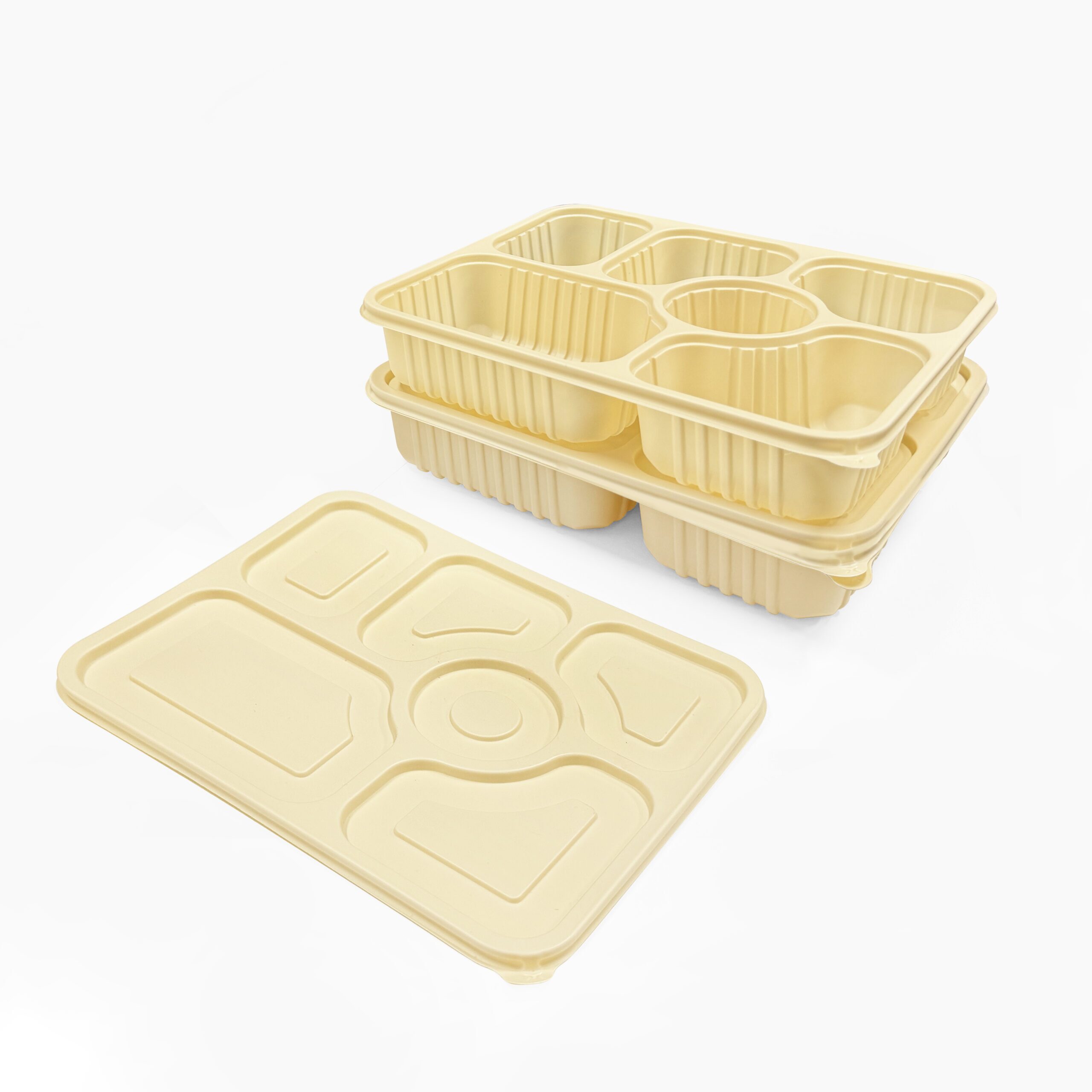 5 section food container made from bio-degradable corn starch