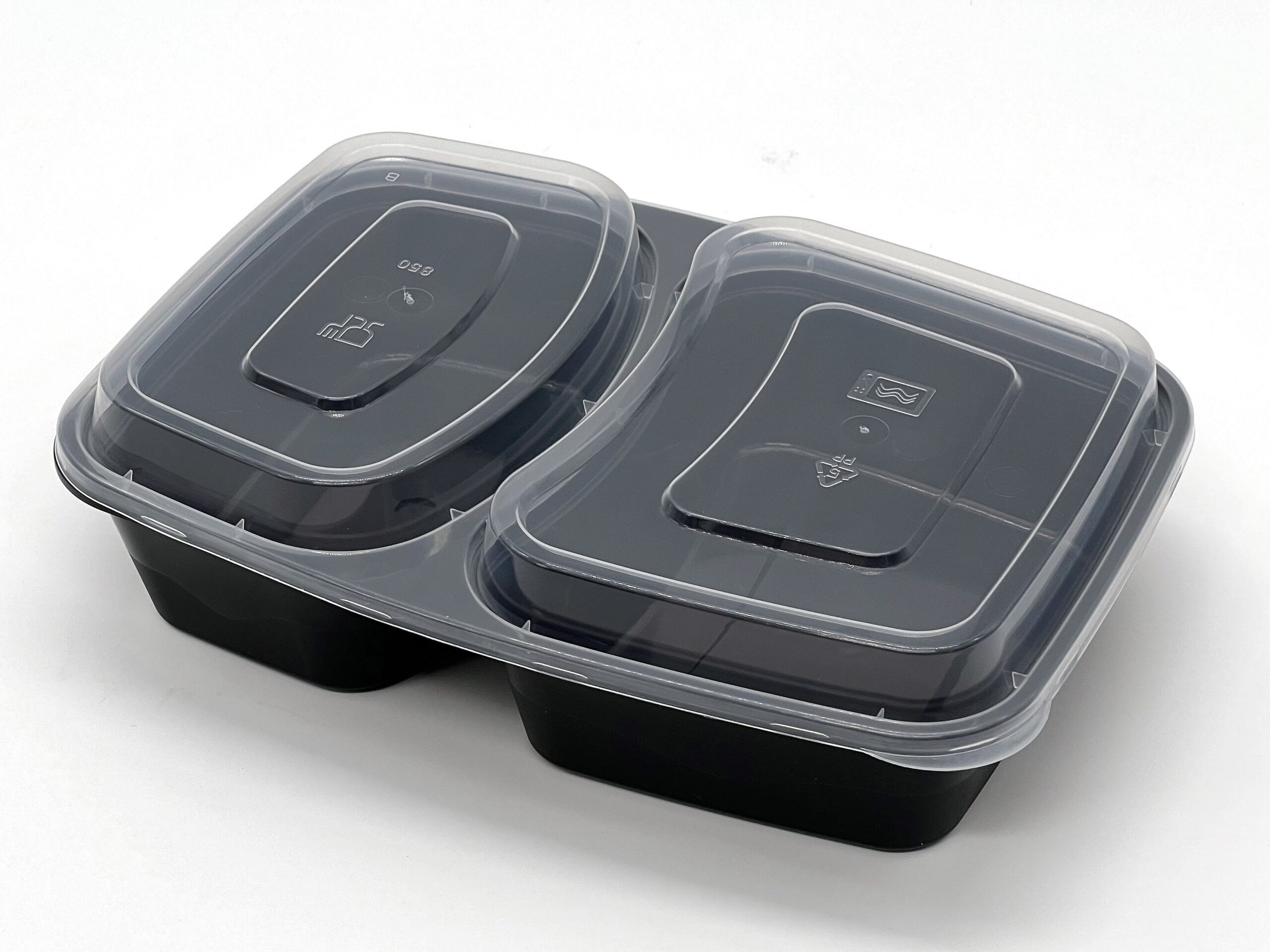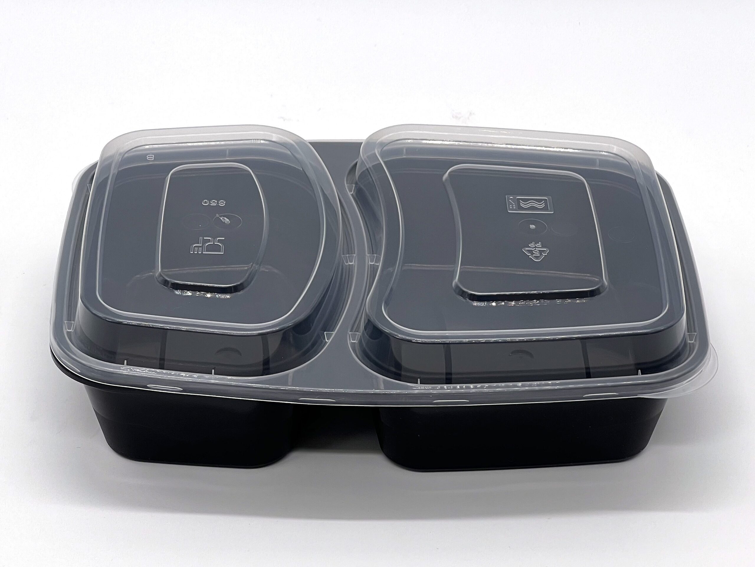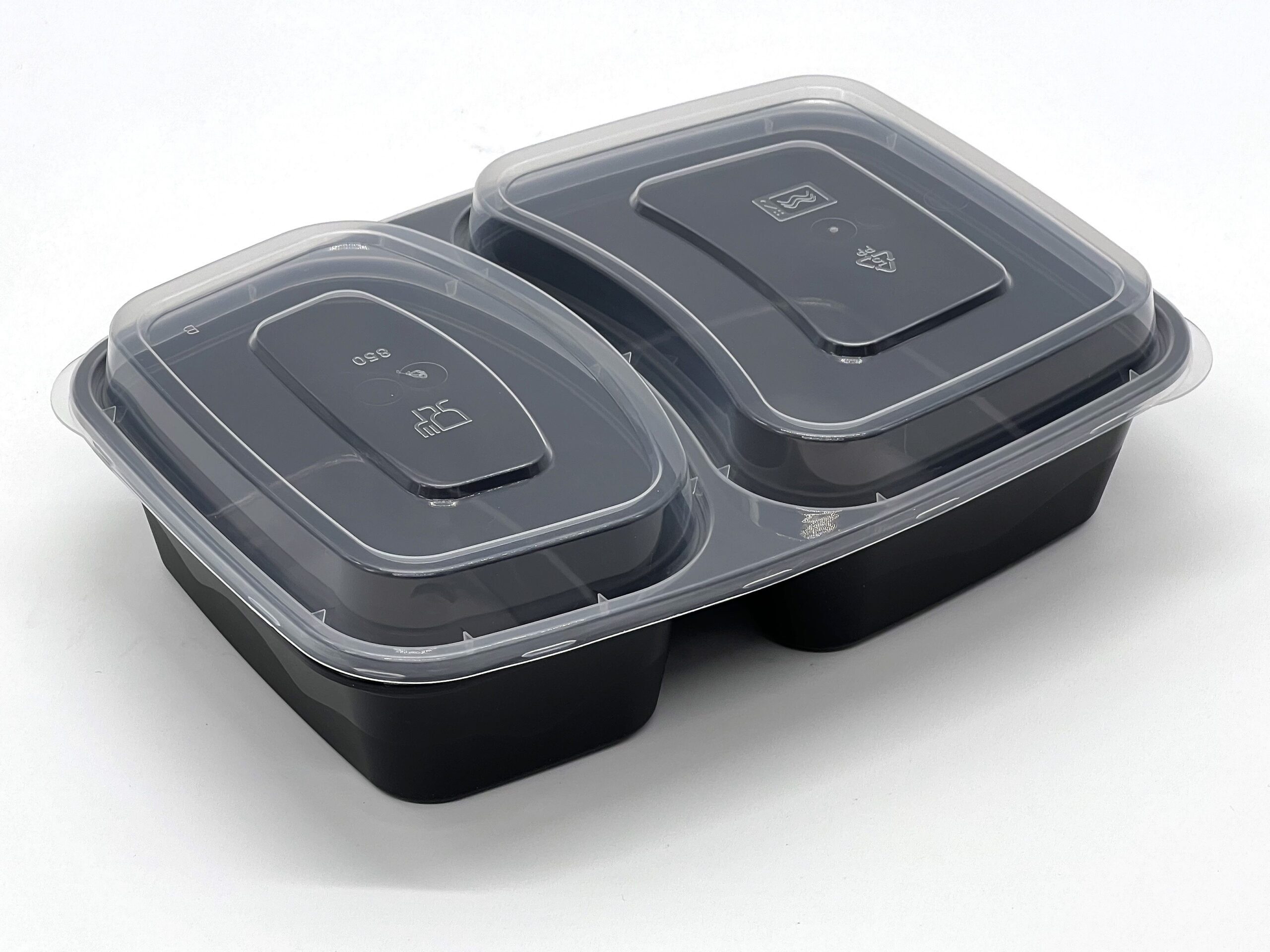 850cc 2 Compartment Food Container, Black Base with Clear Lid, perfectly suited to hold all your essential takeaway dishes