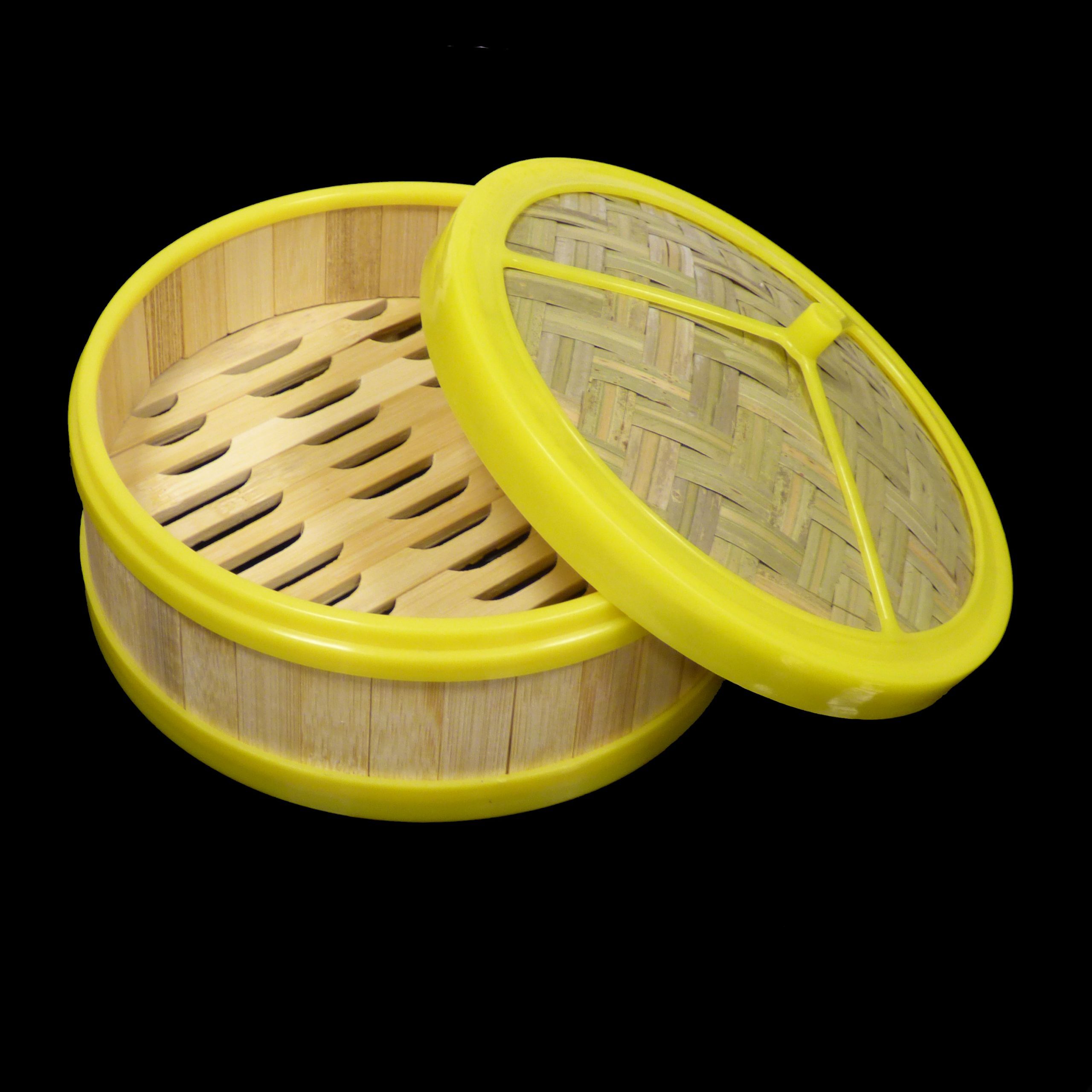 7″ Bamboo steamer set with plastic Rim.