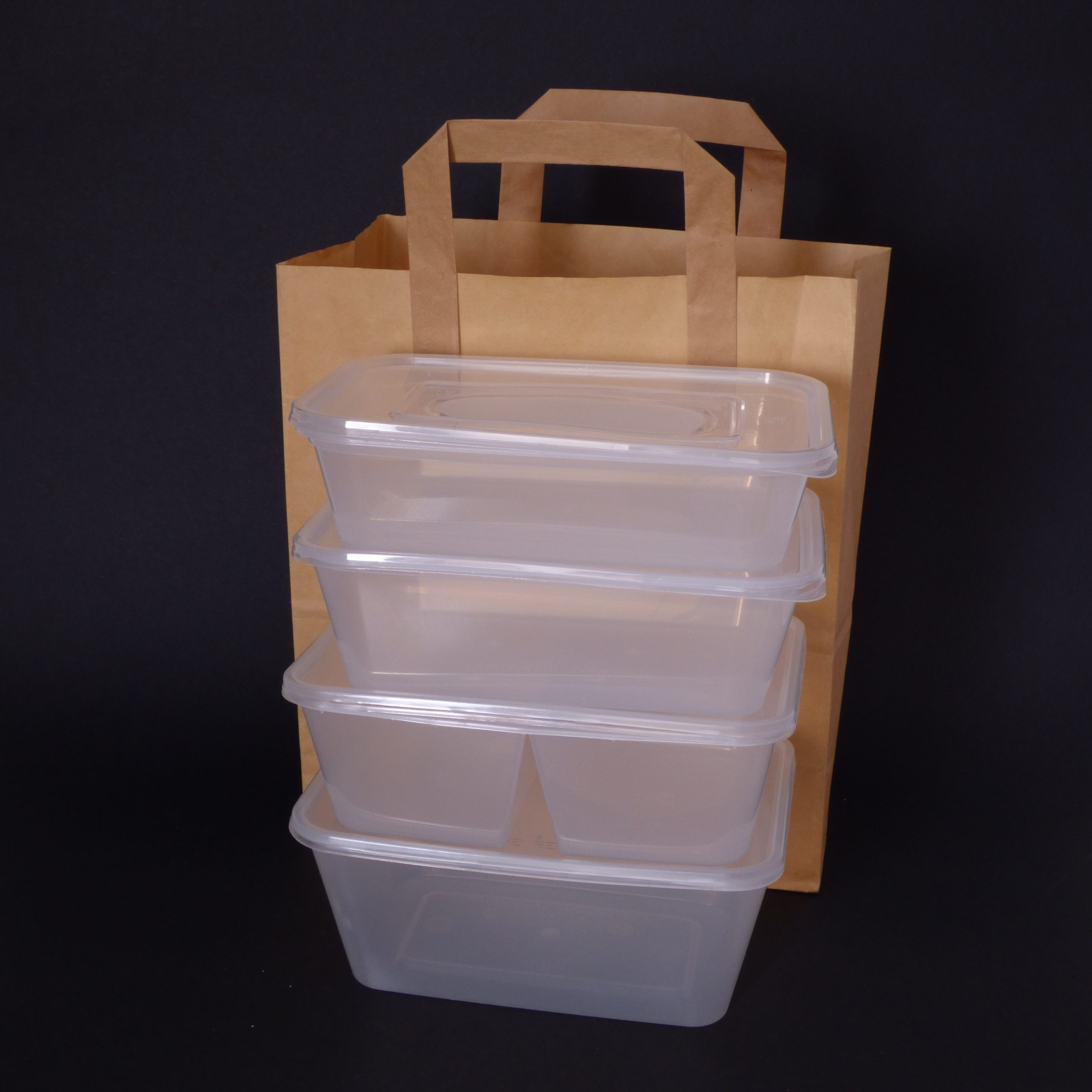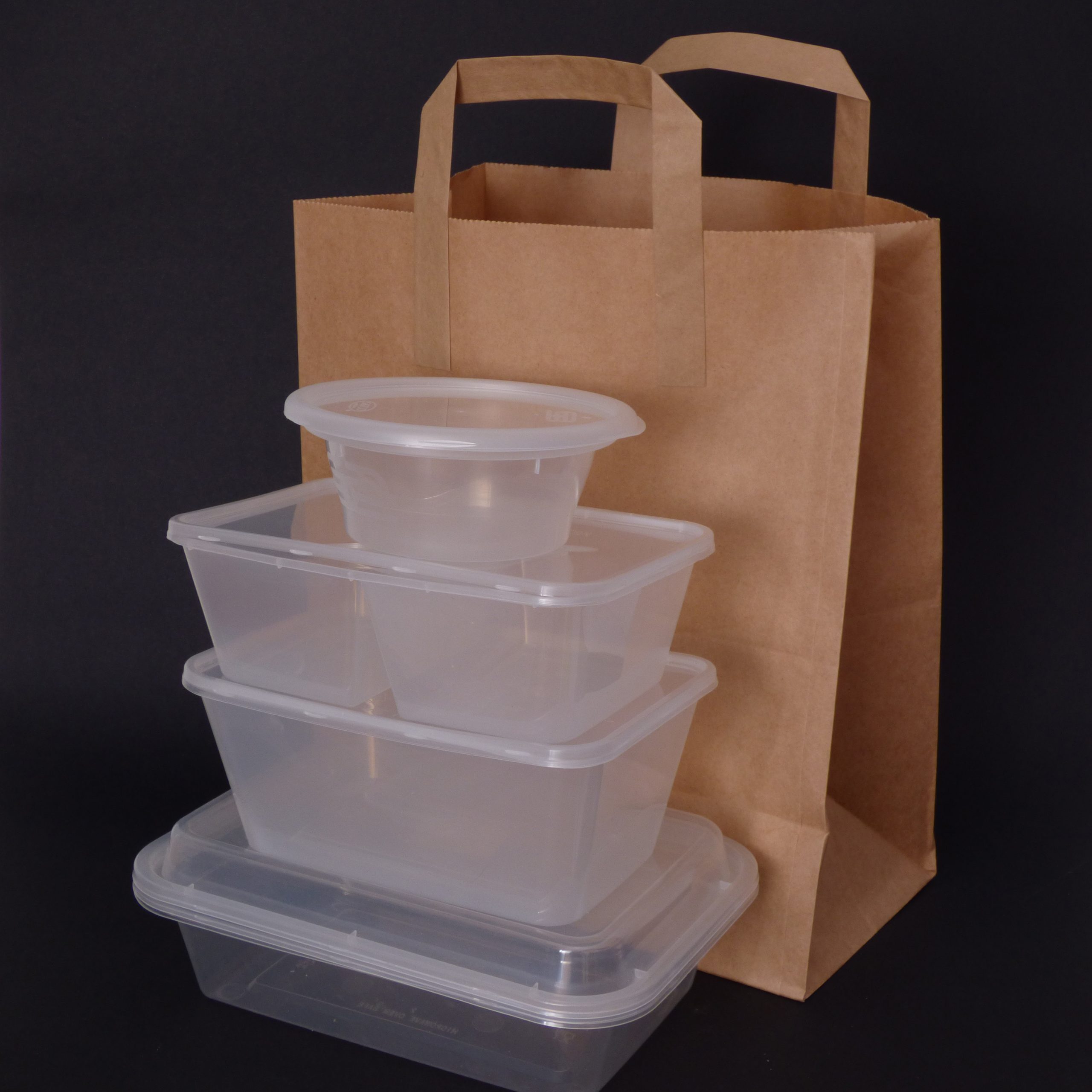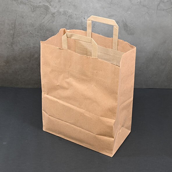 A large sized brown handled paper bag / carrier bag. Ideal for takeaways and a great alternative to plastic bags, as they are easily recycled.