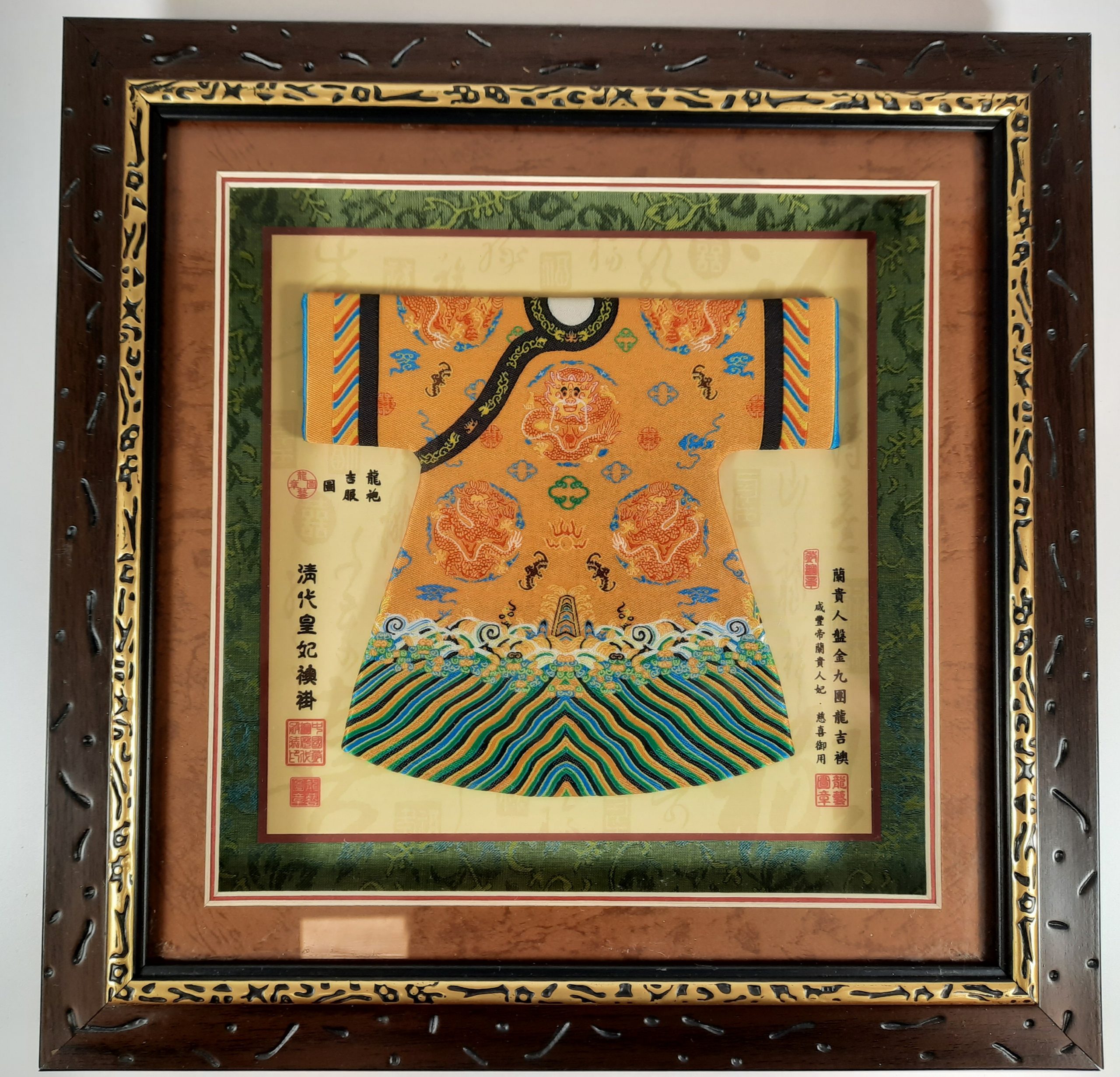 Mount: Layers of cardboard and gold rim dark brown frame with glass.